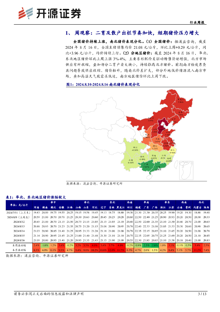 开源证券:农林牧渔行业周报:二育及散户出栏节奏加快,短期猪价压力增大.pdf