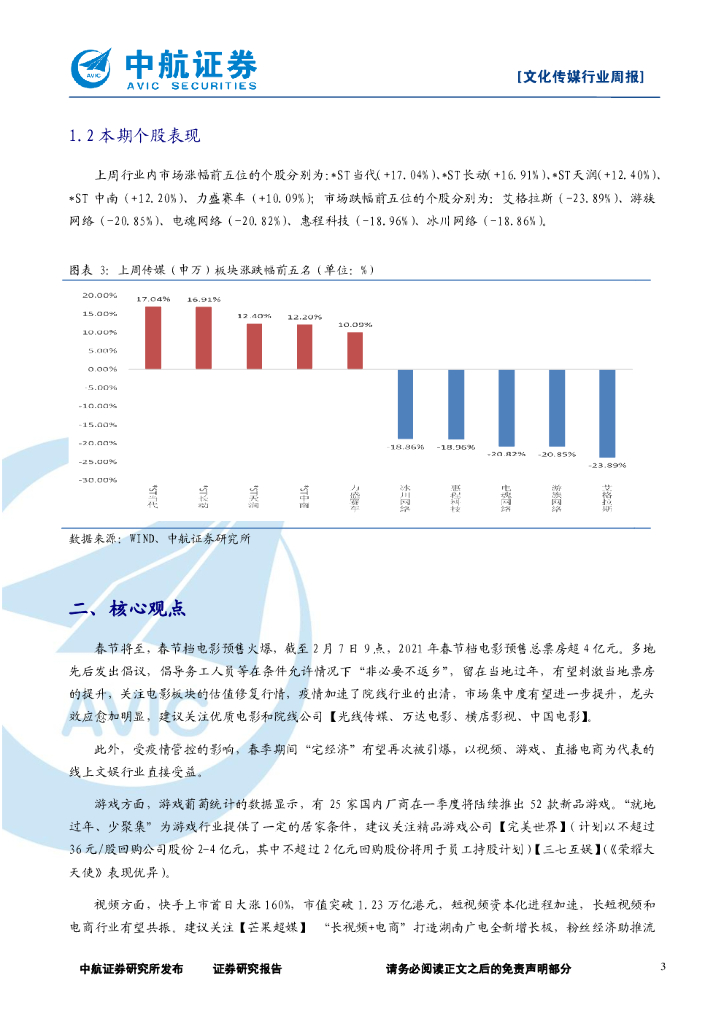 中航证券:文化传媒行业周报:临近春节,建议关注电影与线上娱乐行业.pdf