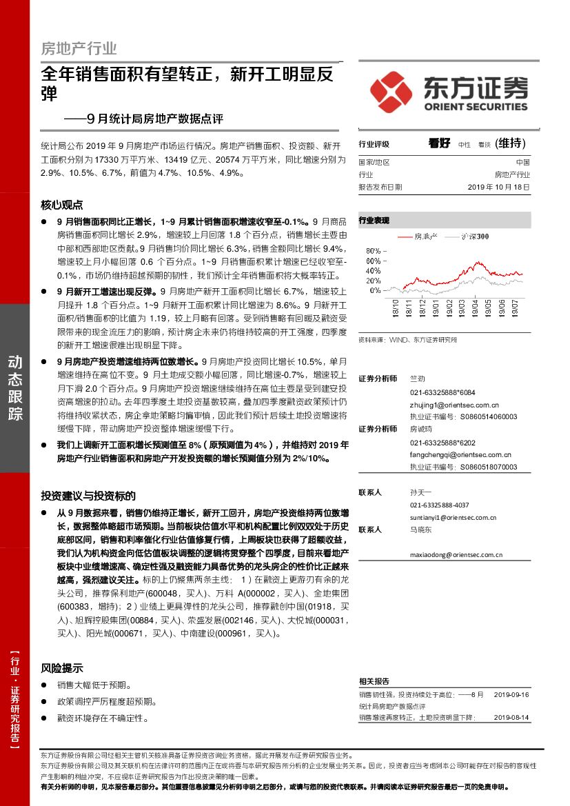 东方证券:9月统计局房地产数据点评:全年销售面积有望转正,新开工明显反弹.pdf