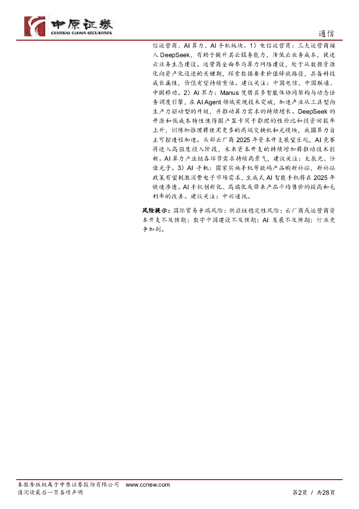 中原证券:Manus在AI Agent领域实现技术突破,AI驱动智算中心升级——通信行业月报.pdf