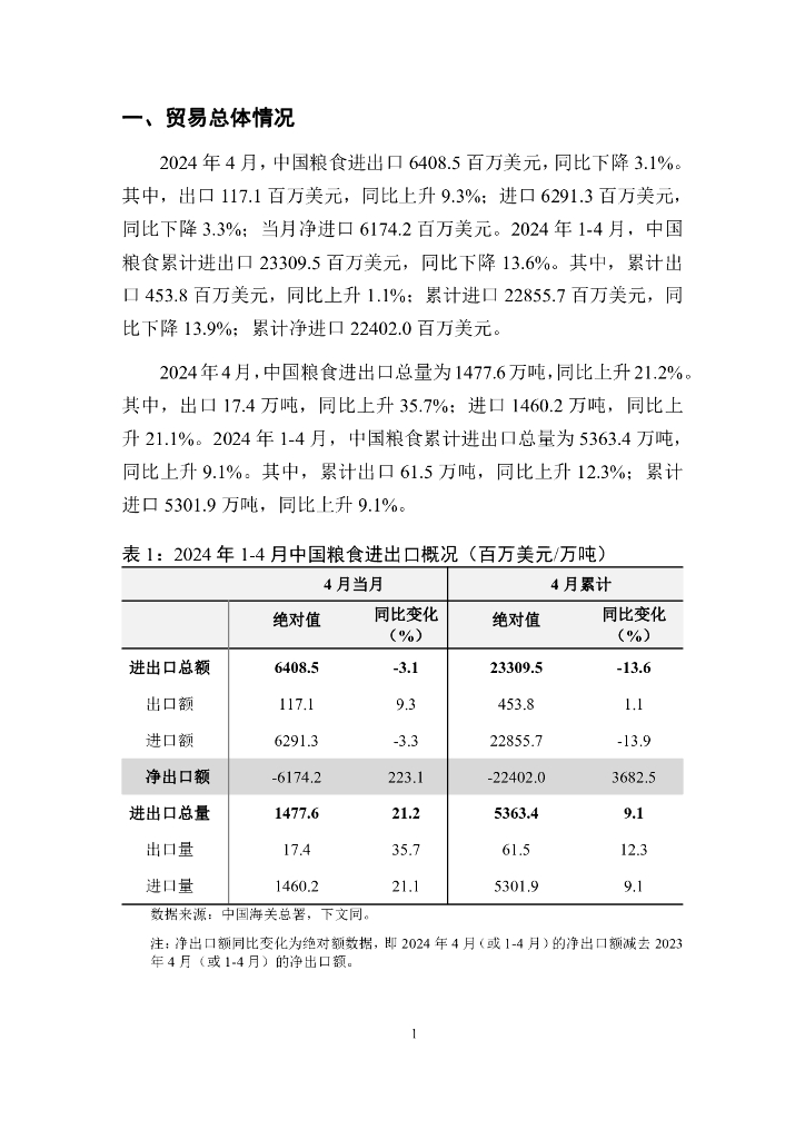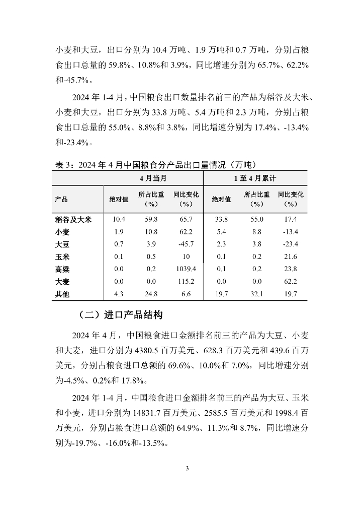 对外经济贸易大学:中国粮食贸易月度监测报告(2024年1-4月).pdf