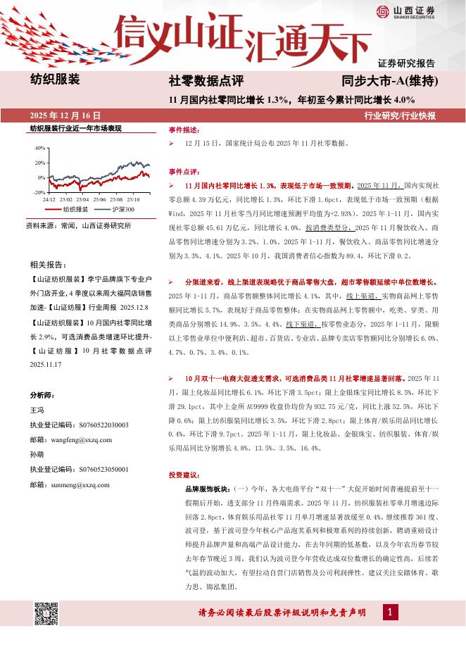 山西证券:社零数据点评:11月国内社零同比增长1.3%,年初至今累计同比增长4.0%.pdf
