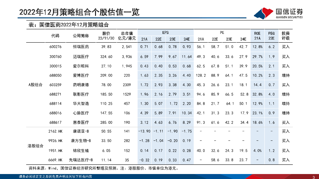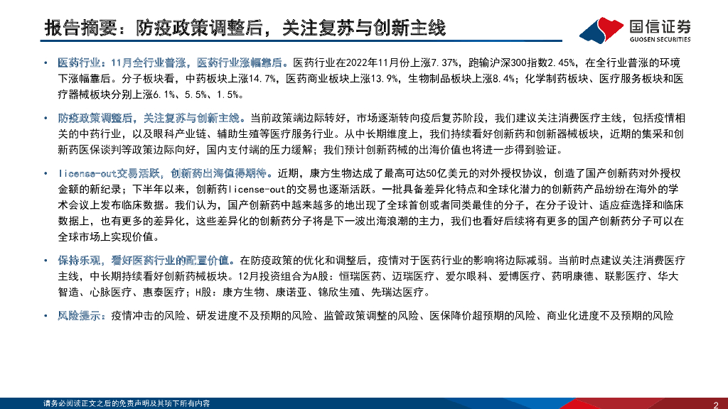 国信证券:医药生物行业2022年12月投资策略:防疫政策调整后,关注复苏与创新主线.pdf