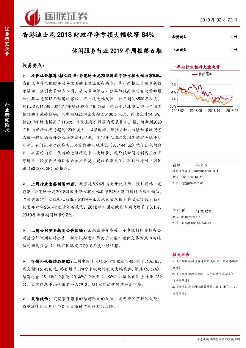 国联证券:休闲服务行业2019年周报第6期:香港迪士尼2018财政年净亏损大幅收窄84%.pdf