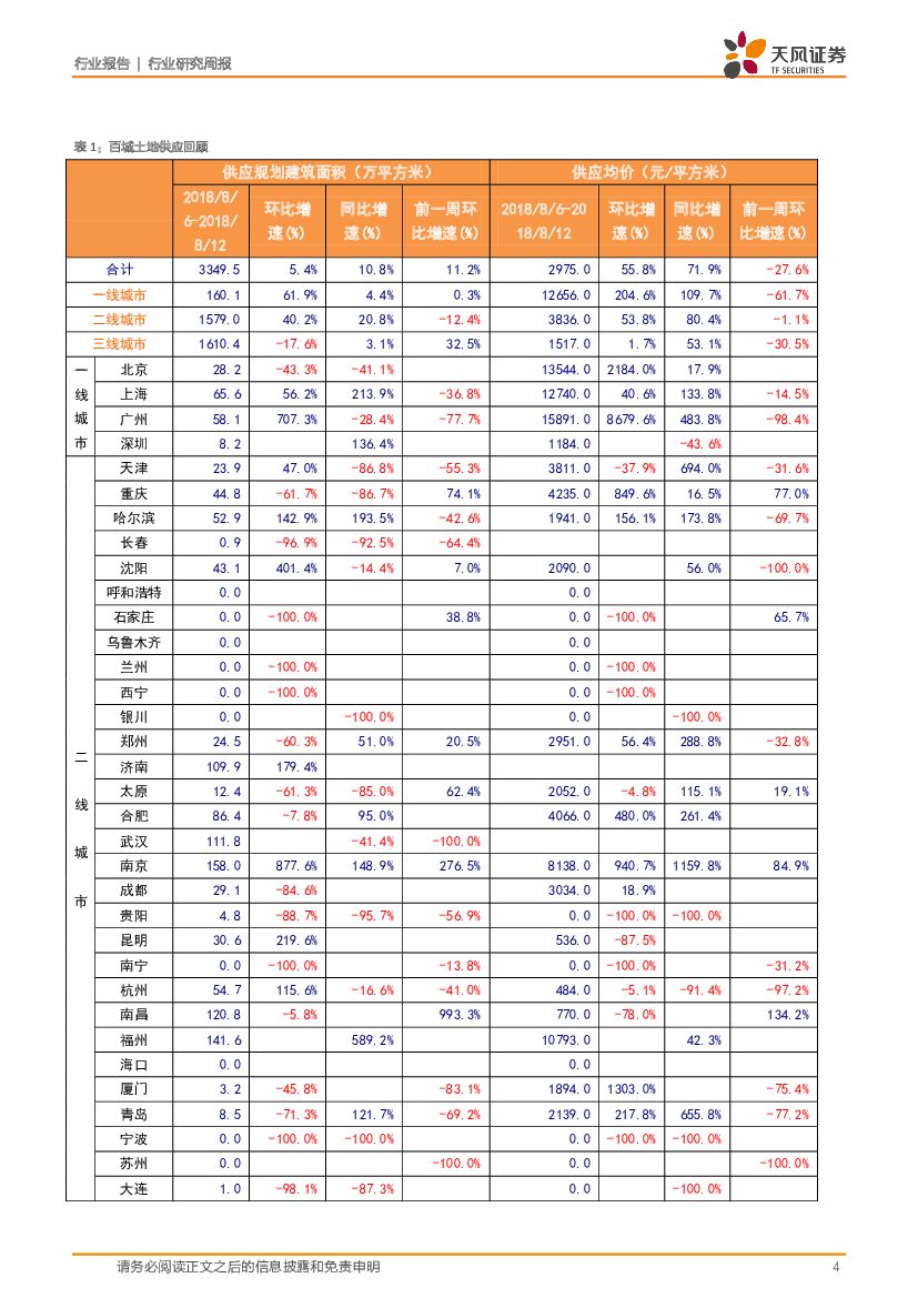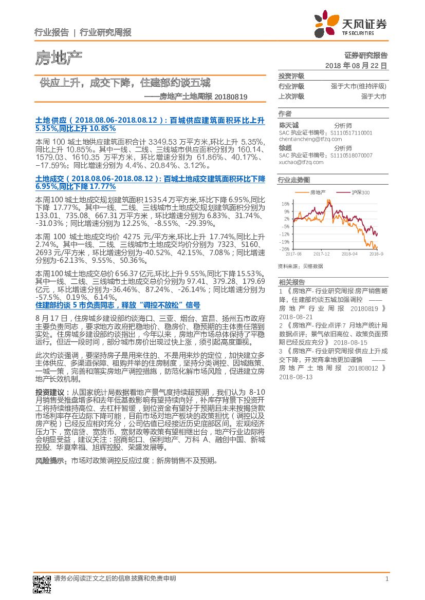 天风证券:房地产土地周报:供应上升,成交下降,住建部约谈五城.pdf