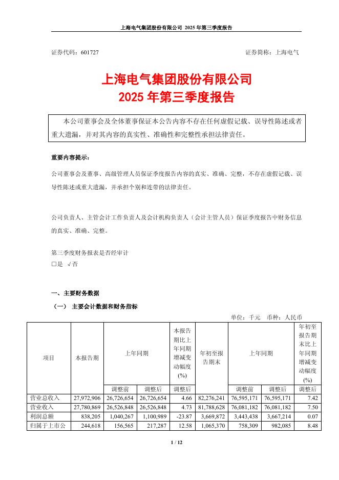 601727-上海电气:上海电气2025年第三季度报告.pdf