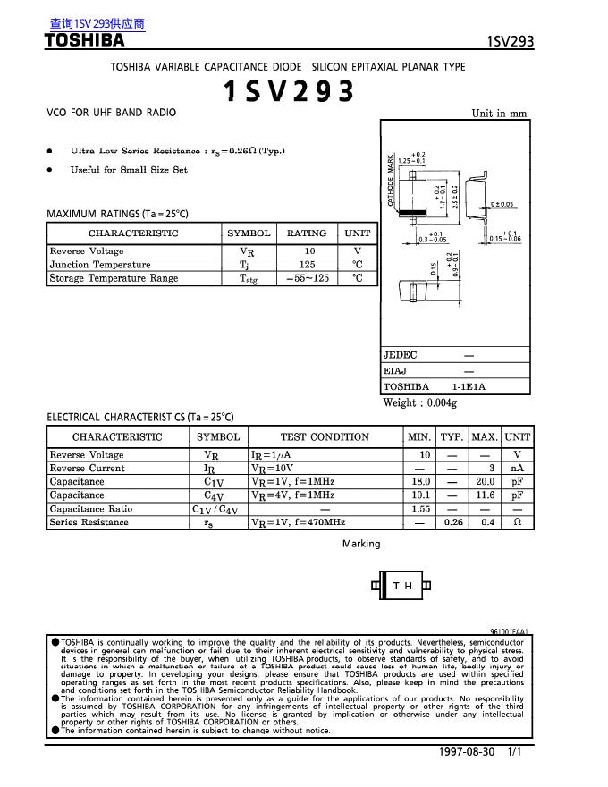 TOSHIBA 1SV293 数据手册.pdf