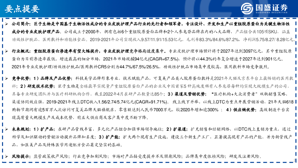 国盛证券:美容护理:巨子生物 重组胶原蛋白第一股.pdf