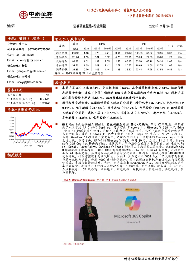 中泰证券:中泰通信行业周报:AI算力/光模块获新催化,重视新型工业化机会.pdf