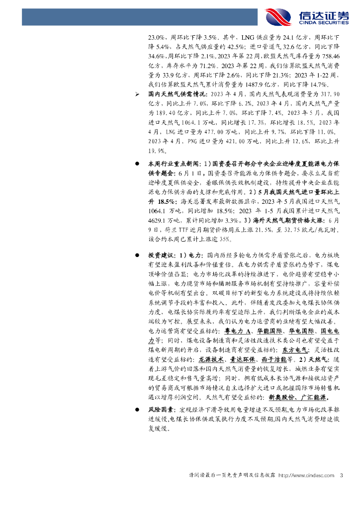 信达证券:公用事业一电力天然气周报:国际煤价气价有所回升,5月天然气进口量同比增长17.3%.pdf