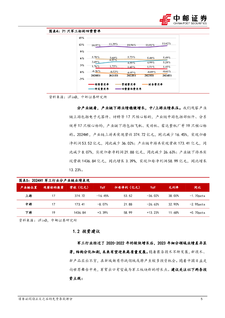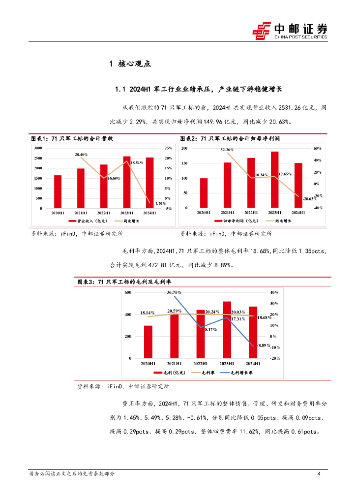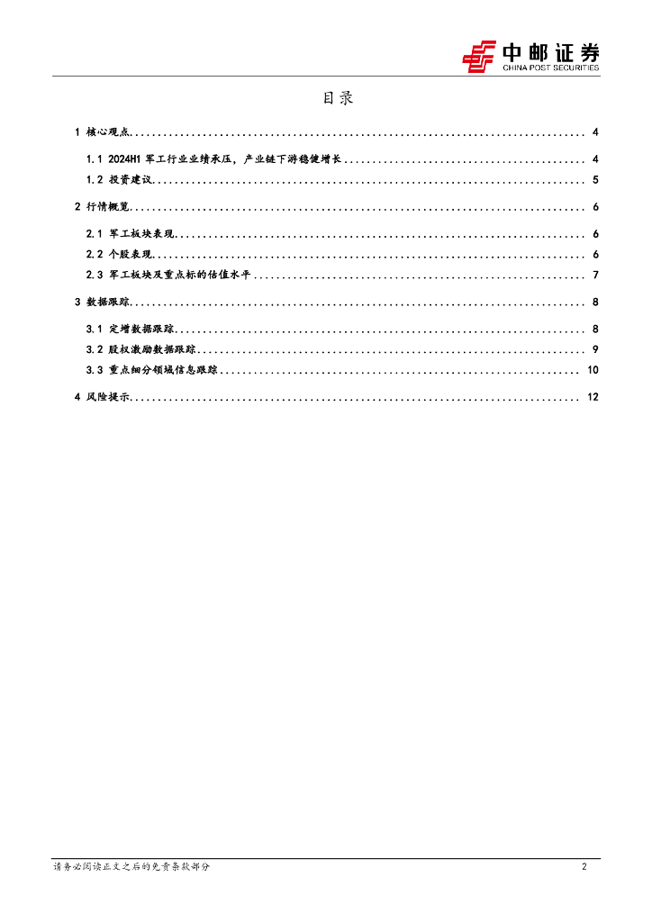 中邮证券:国防军工行业报告:2024H1军工行业业绩承压,产业链下游稳健增长.pdf