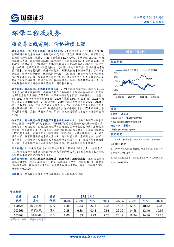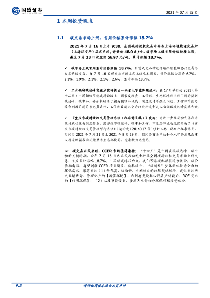 国盛证券:环保工程及服务行业周报:碳交易上线首周,价格持续上涨.pdf