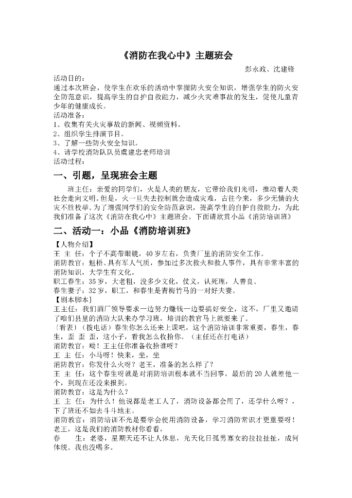 浙江金华市东阳二中《消防在我心中》班会设计方案.doc
