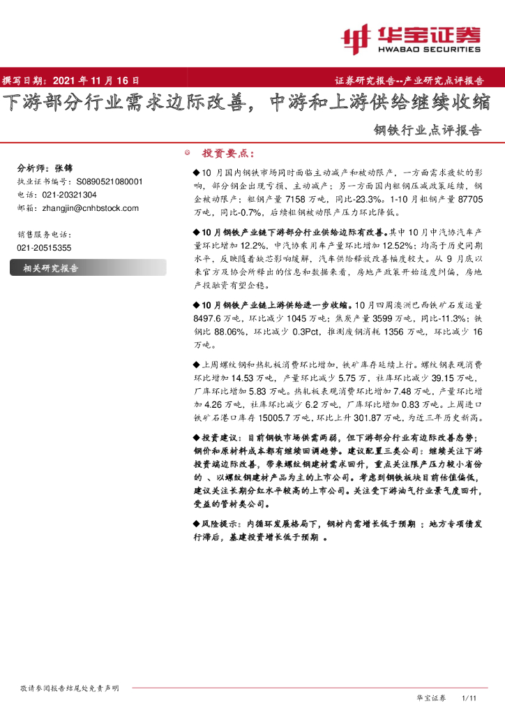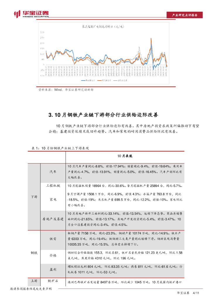 华宝证券:钢铁行业点评报告:下游部分行业需求边际改善,中游和上游供给继续收缩.pdf
