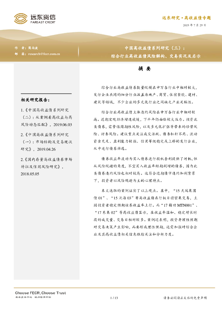 远东资信:中国高收益债系列研究(三):综合行业高收益债风险解构、交易实况及启示.pdf