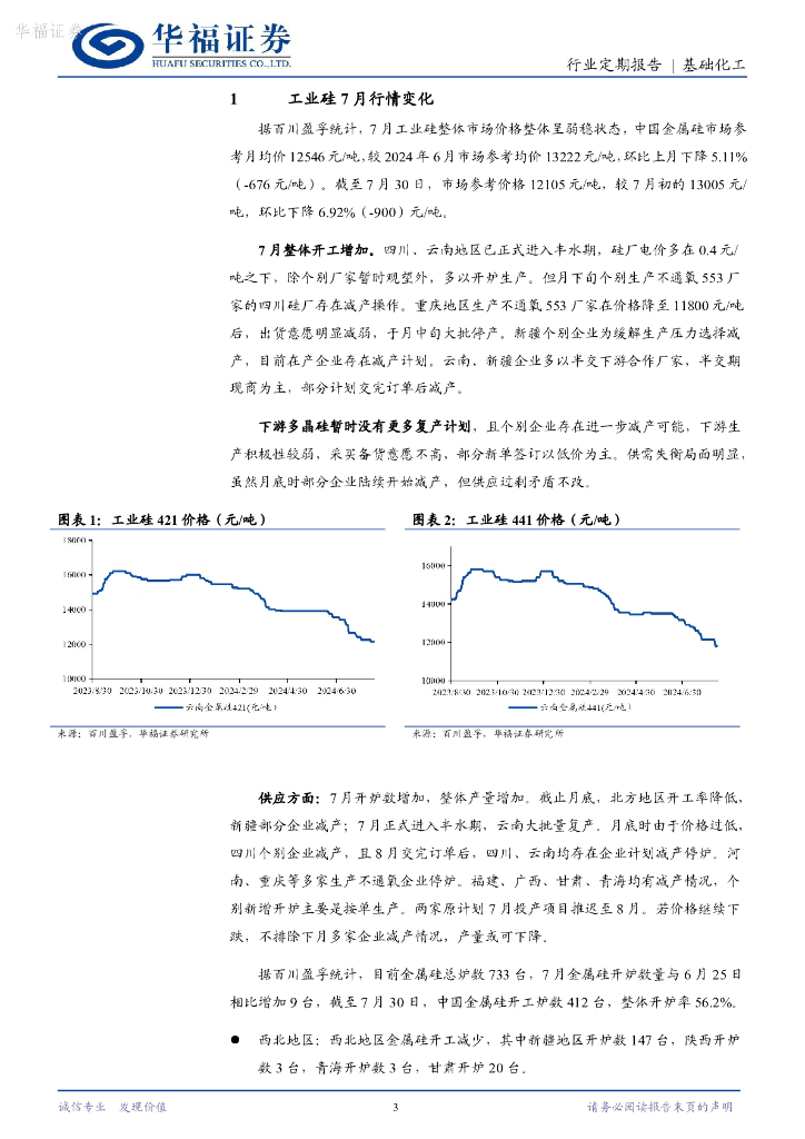 华福证券:基础化工:硅化工7月定期跟踪:工业硅价格底部震荡,有机硅仍显疲软.pdf