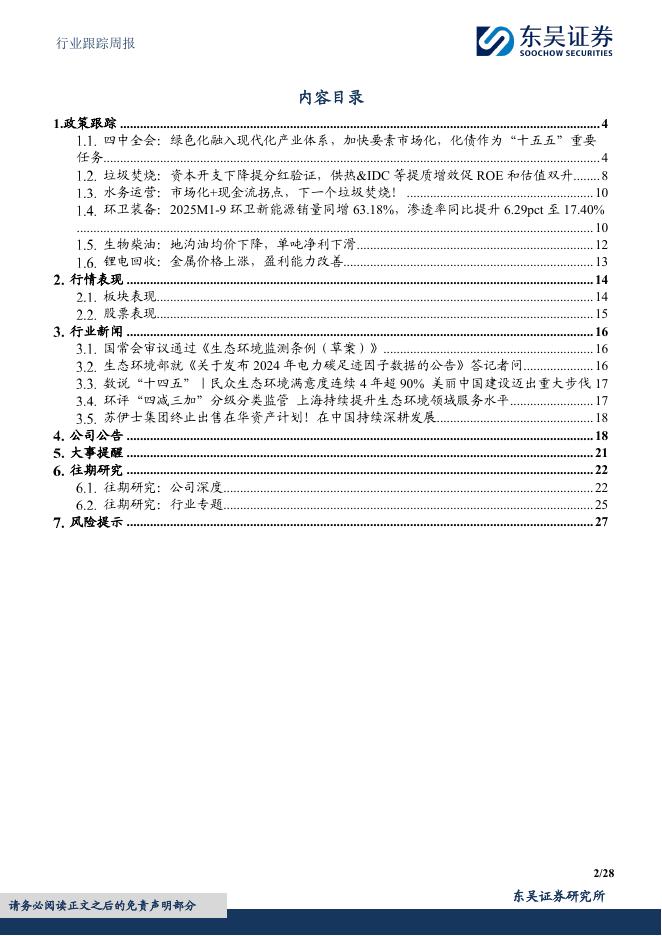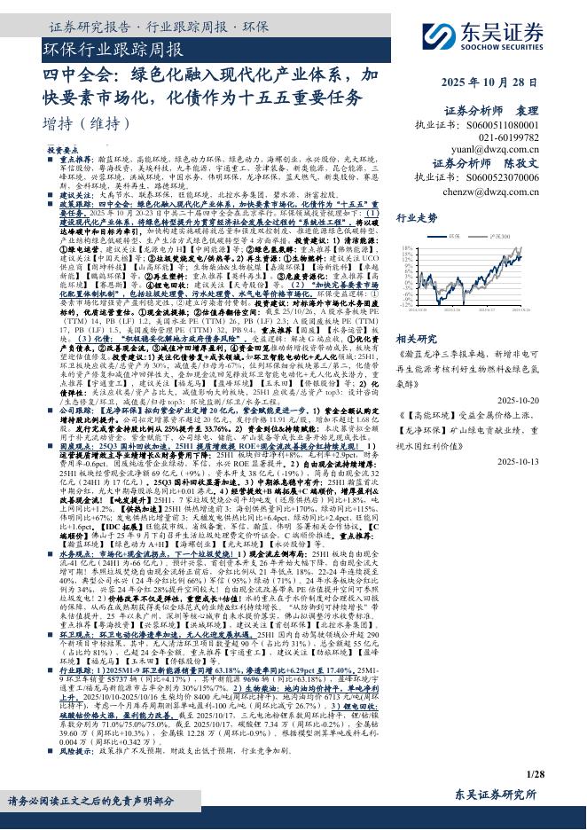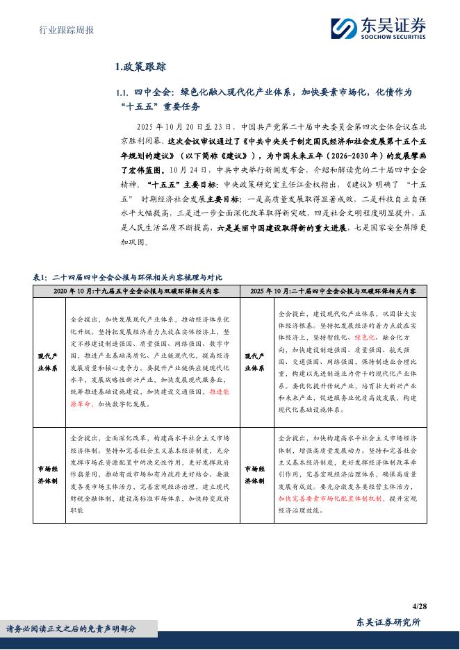 东吴证券:环保行业跟踪周报:四中全会:绿色化融入现代化产业体系,加快要素市场化,化债作为十五五重要任务.pdf