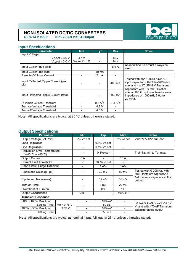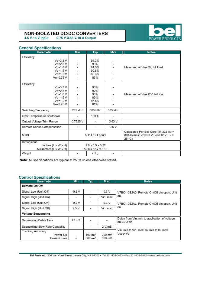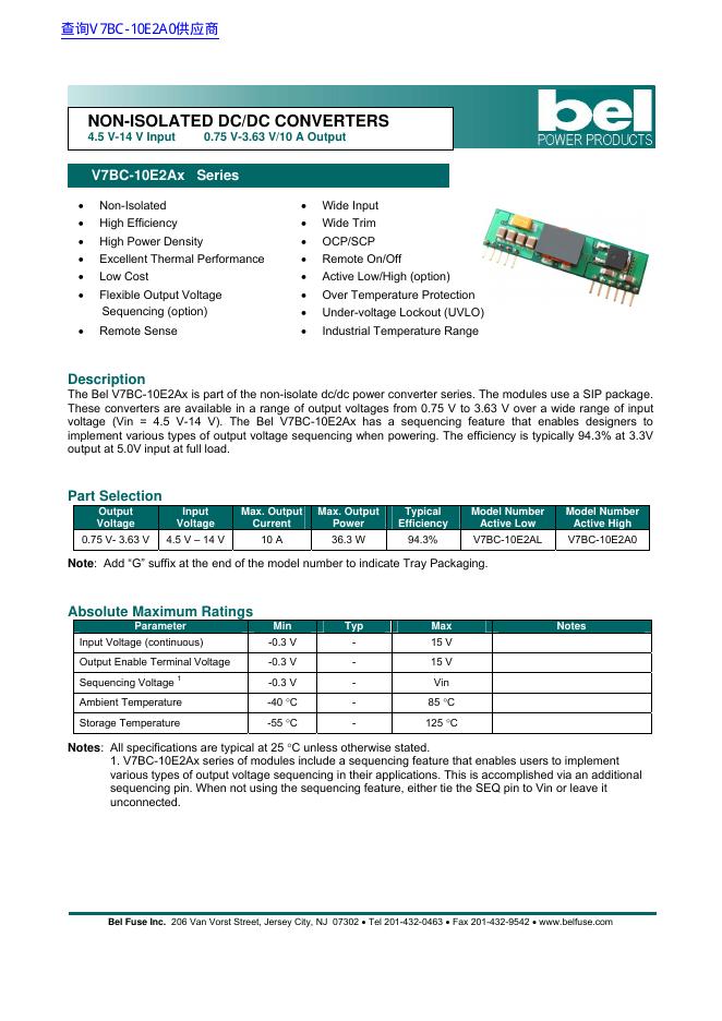 bel POWER PRODUCTS V7BC-10E2Ax Series 数据手册.pdf