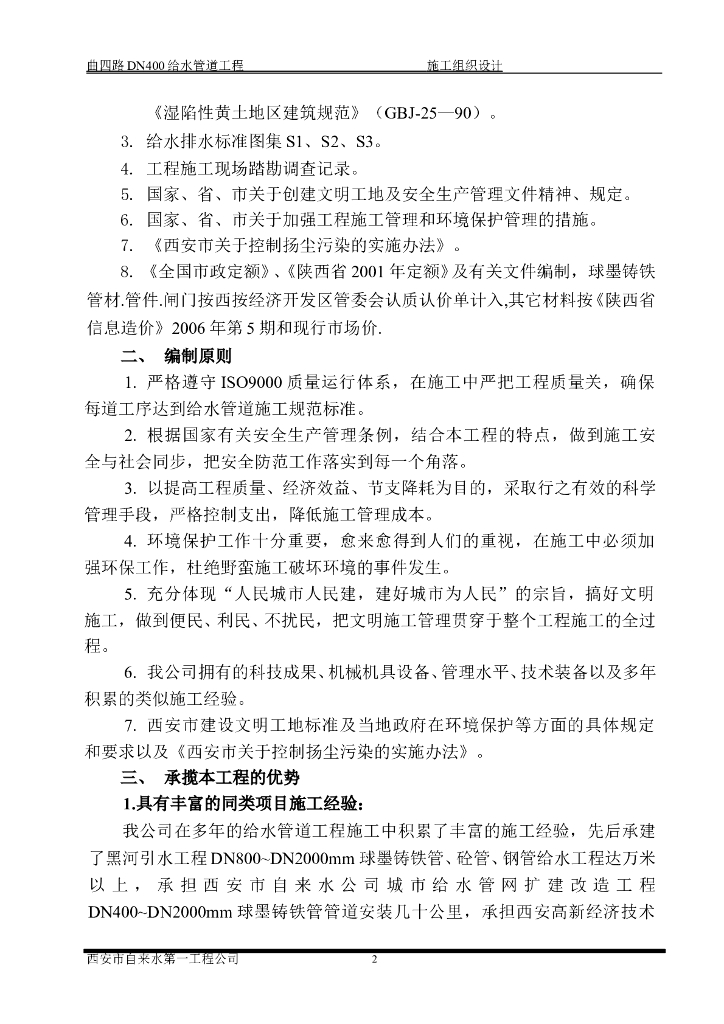西安某区球墨铸铁管给水管道施工组织设计.doc