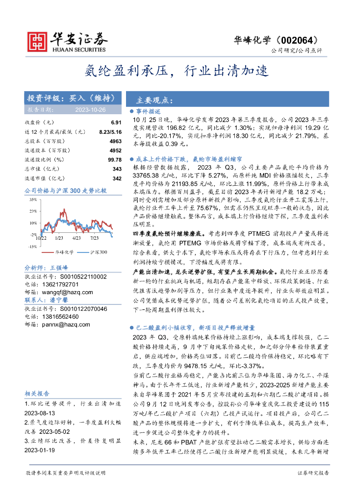 华安证券:华峰化学(002064)-氨纶盈利承压,行业出清加速.pdf