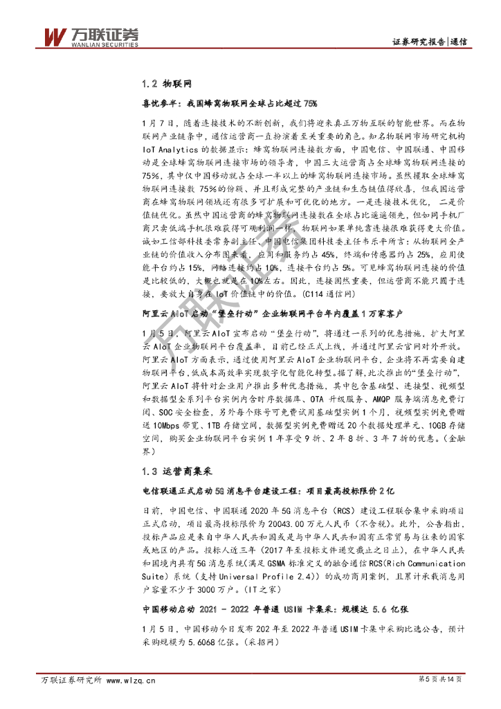 万联证券:通信行业周观点:我国蜂窝物联网全球占比超过75%.pdf
