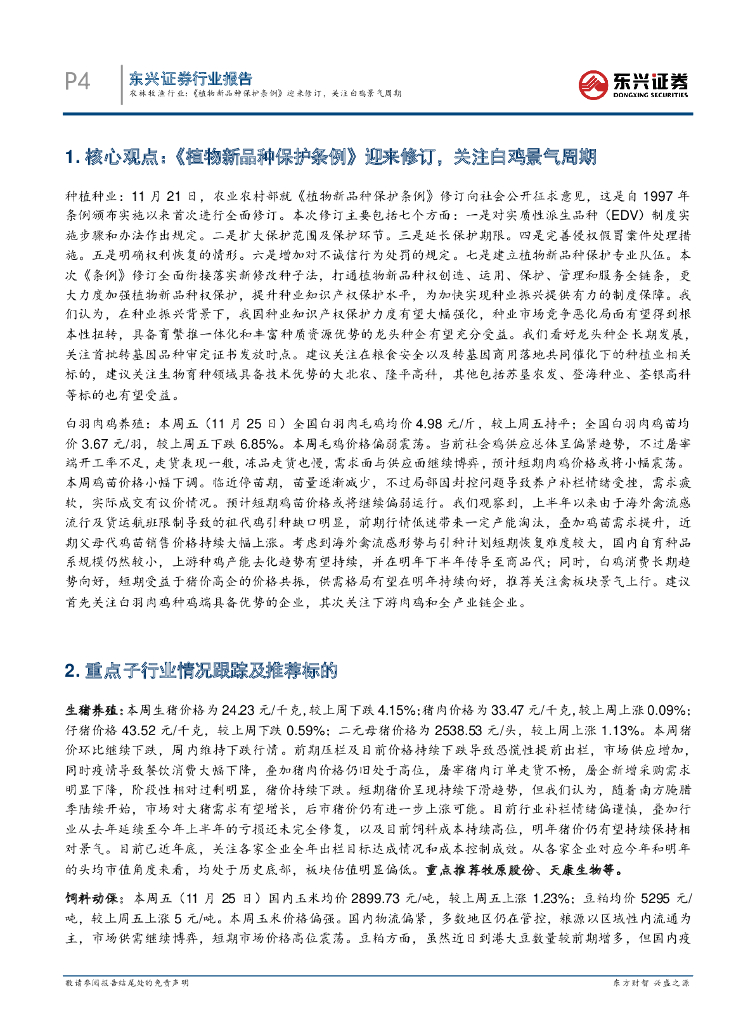 东兴证券:行业周观点(2022年47周):农林牧渔行业:《植物新品种保护条例》迎来修订,关注白鸡景气周期.pdf