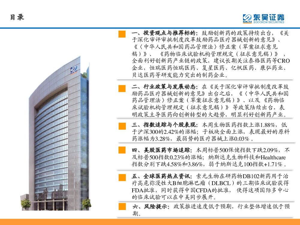 东吴证券:东吴医药行业周观点:鼓励创新药的政策持续出台,创新药题材持续成为热点.pdf