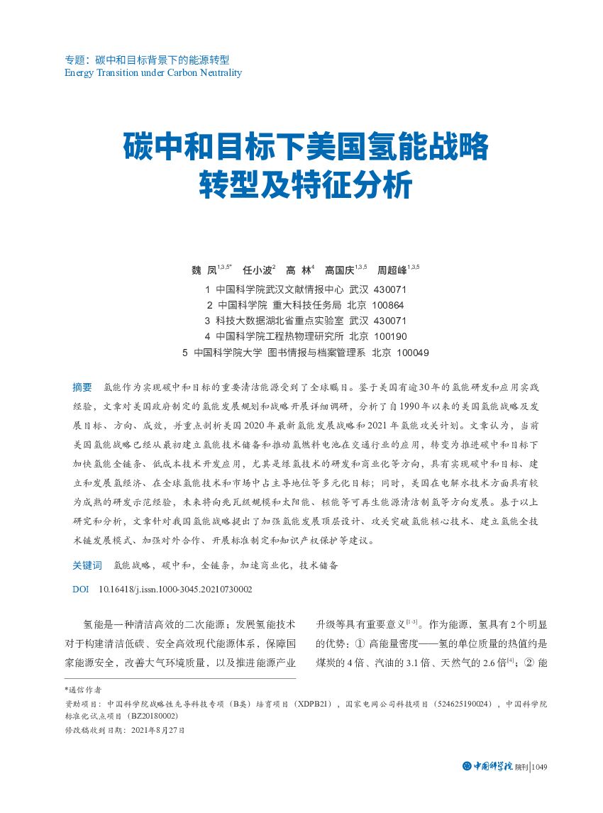 中国科学院:碳中和目标下美国氢能战略转型及特征分析.pdf