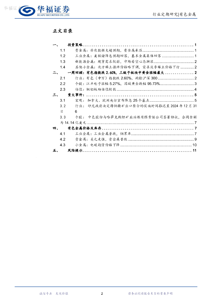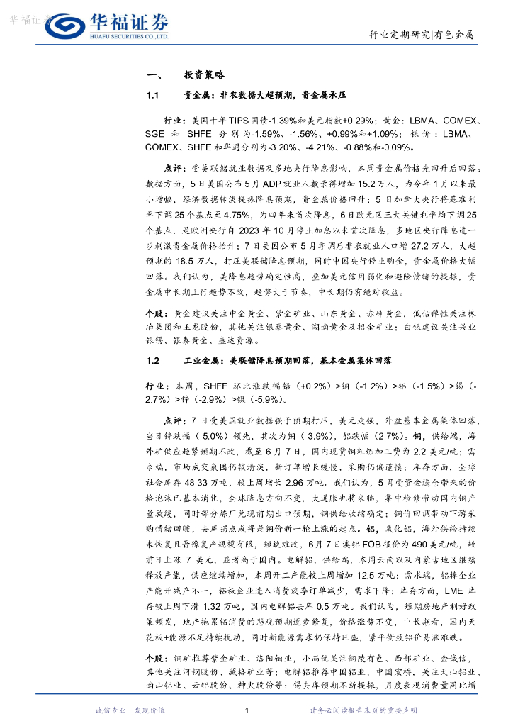 华福证券:有色金属行业周报:美联储降息预期减弱以及中国央行暂停增持黄金,金属市场承压,继续推荐金铜铝锑.pdf