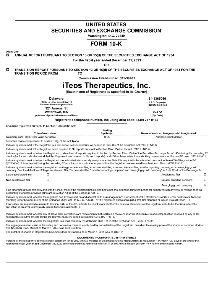 iTeos Therapeutics, Inc.(ITOS)2023财年年度报告(英文版).pdf