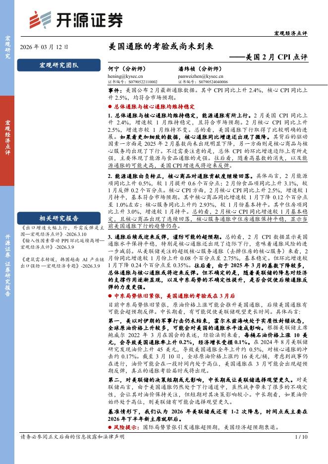 开源证券:美国2月CPI点评:通胀的考验或尚未到来-260312.pdf