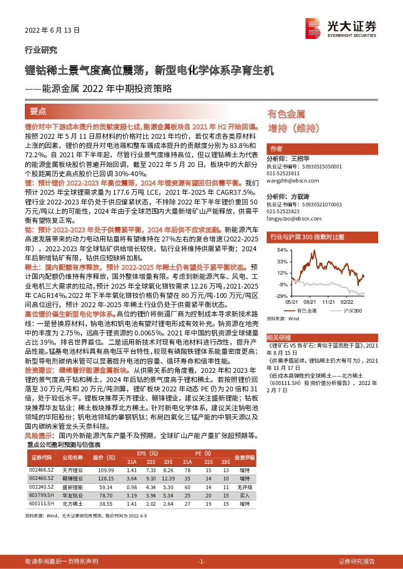 光大证券:能源金属2022年中期投资策略:锂钴稀土景气度高位震荡,新型电化学体系孕育生机.pdf
