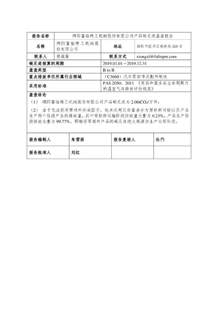 绵阳富临精工机械股份有限公司产品碳足迹盘查报告.pdf