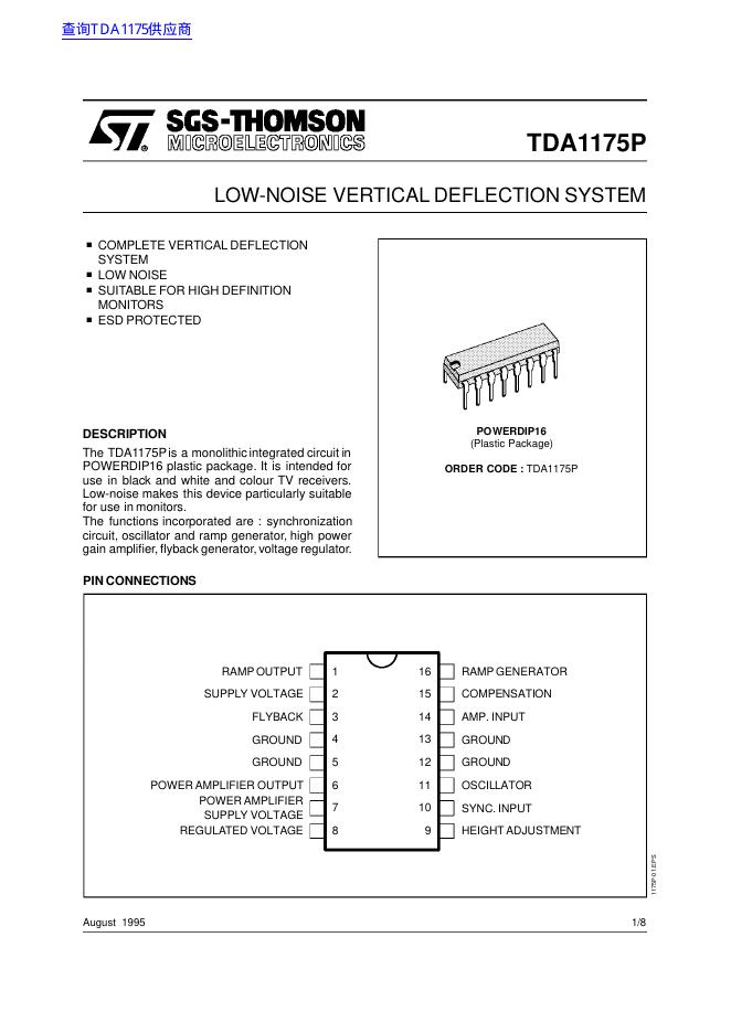 SGS-THOMSON TDA1175P LOW-NOISE VERTICAL DEFLECTION SYSTEM 数据手册.pdf