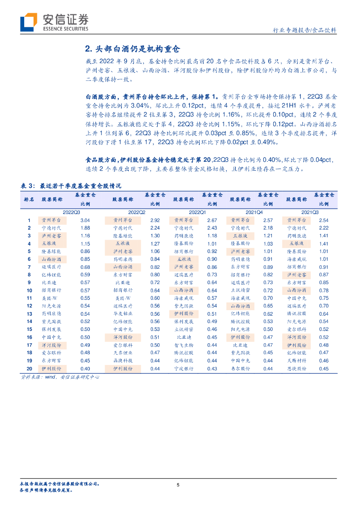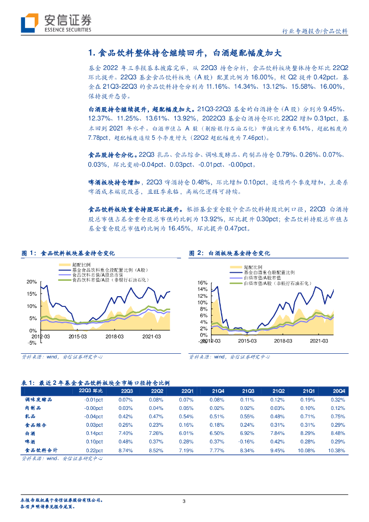 安信证券:食品饮料行业专题报告:22Q3基金持仓分析:整体持仓继续回升,白酒超配幅度加大.pdf