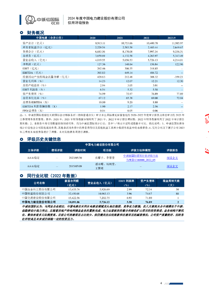 中诚信:2024年度中国电力建设股份有限公司信用评级报告.pdf
