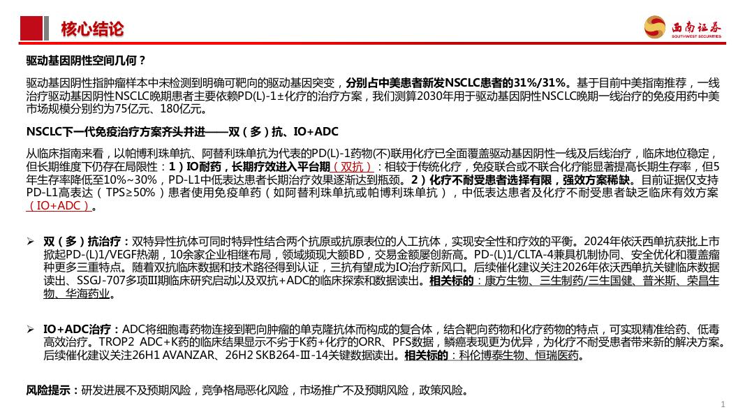 西南证券:驱动基因阴性NSCLC专题:下一代治疗范式:双抗、IO+ADC.pdf