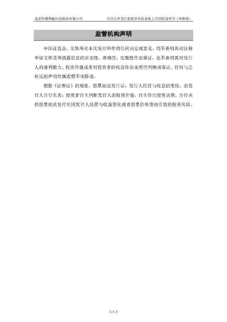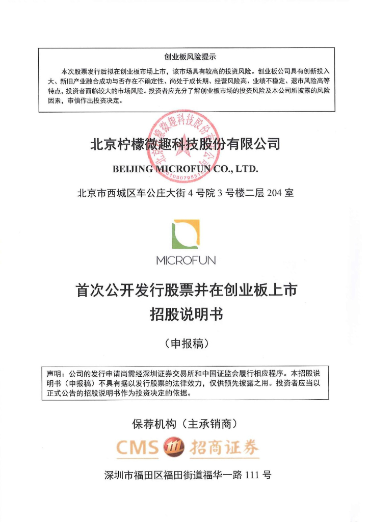 北京柠檬微趣科技股份有限公司深交所创业板IPO上市招股说明书.pdf