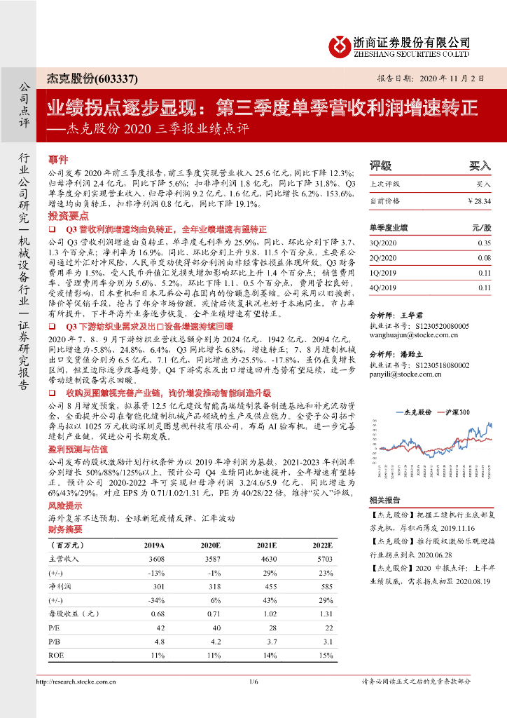 浙商证券:杰克股份2020三季报业绩点评:业绩拐点逐步显现:第三季度单季营收利润增速转正.pdf