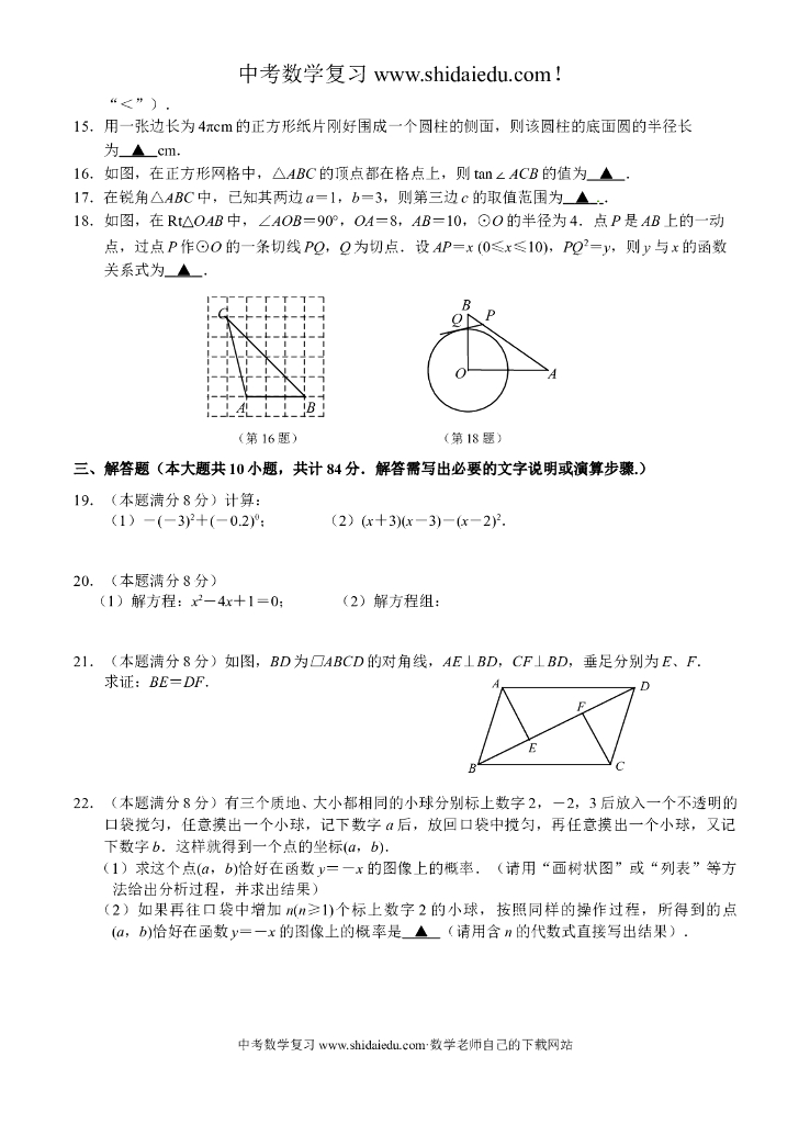 无锡市宜兴市届中考第三次模拟考试数学试题含答案.doc
