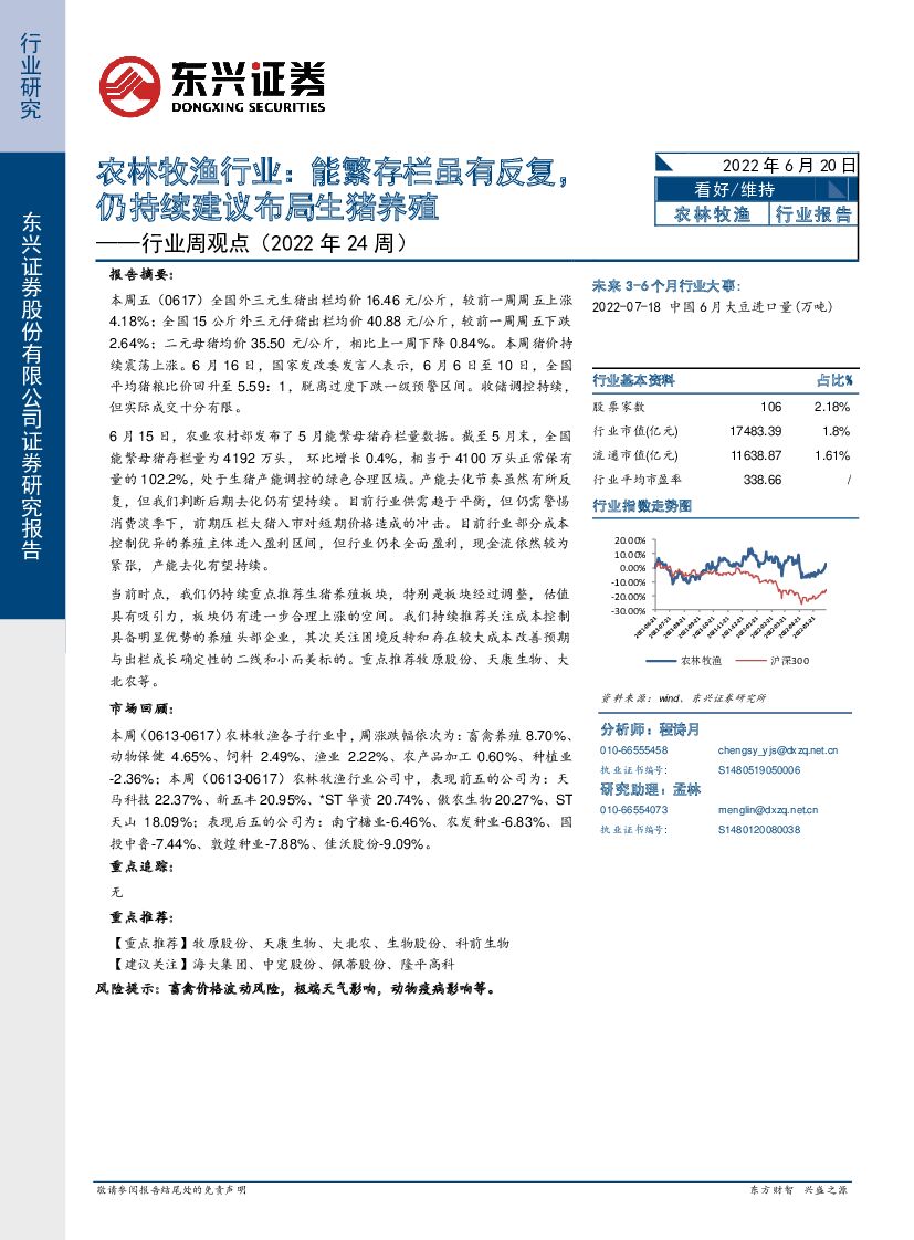 东兴证券:农林牧渔行业周观点(2022年24周):能繁存栏虽有反复,仍持续建议布局生猪养殖.pdf