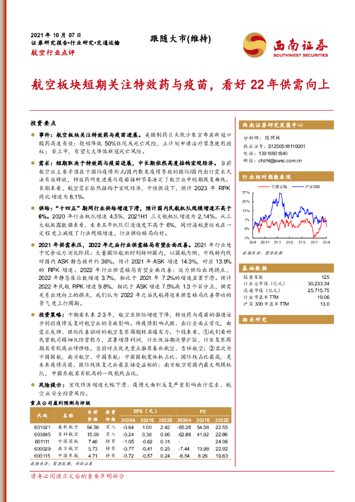 西南证券:航空行业点评:航空板块短期关注特效药与疫苗,看好22年供需向上.pdf