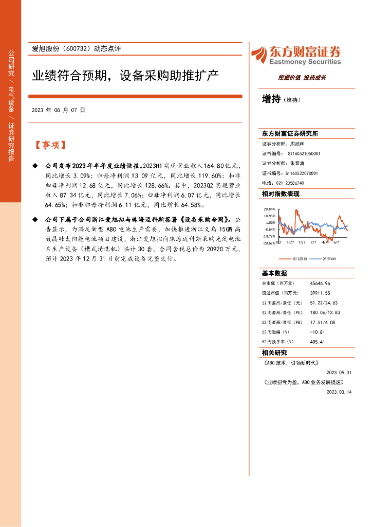 东方财富证券:爱旭股份(600732)-动态点评:业绩符合预期,设备采购助推扩产.pdf
