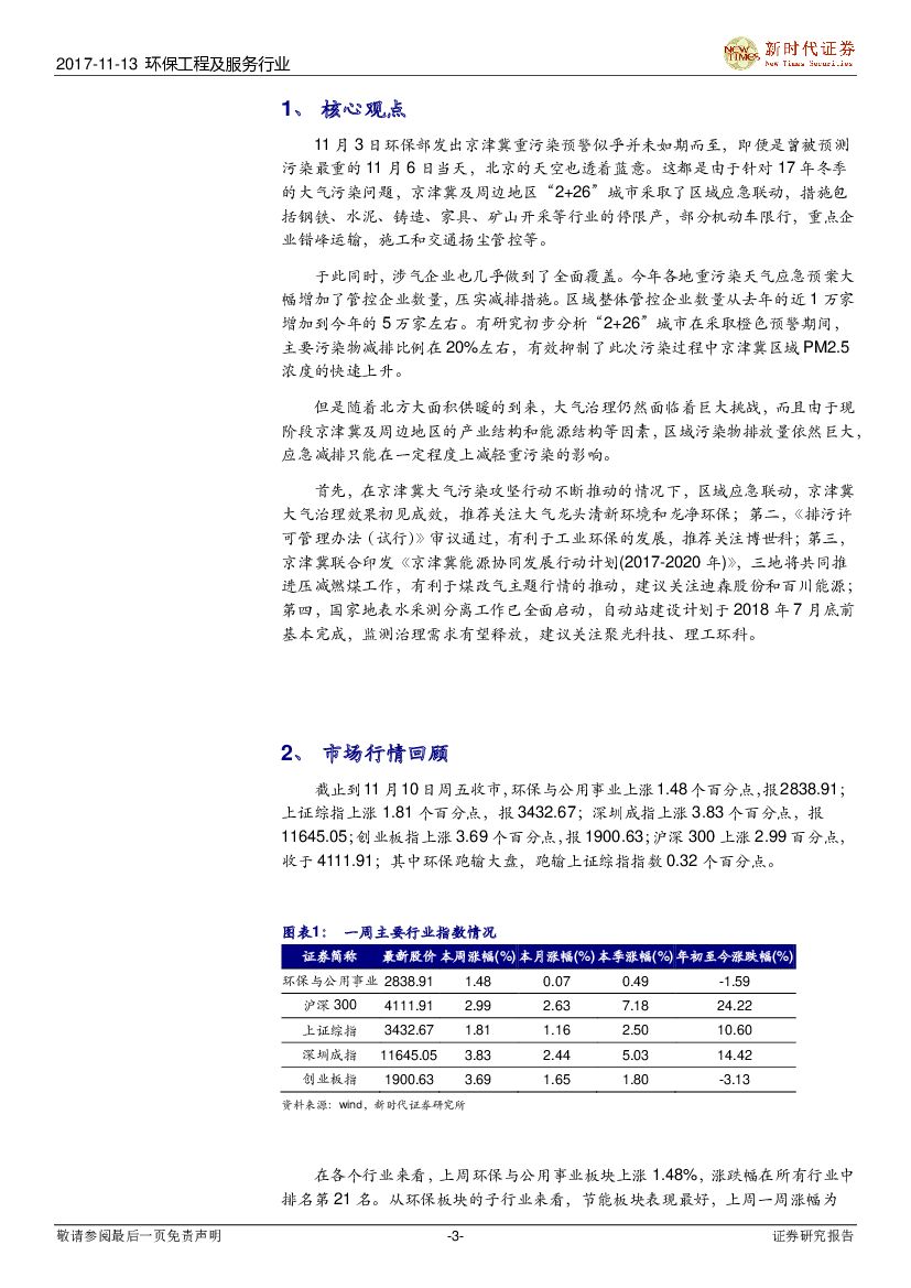 新时代证券:环保工程及服务行业研究周报:区域应急联动,京津冀大气治理效果初见成效.pdf