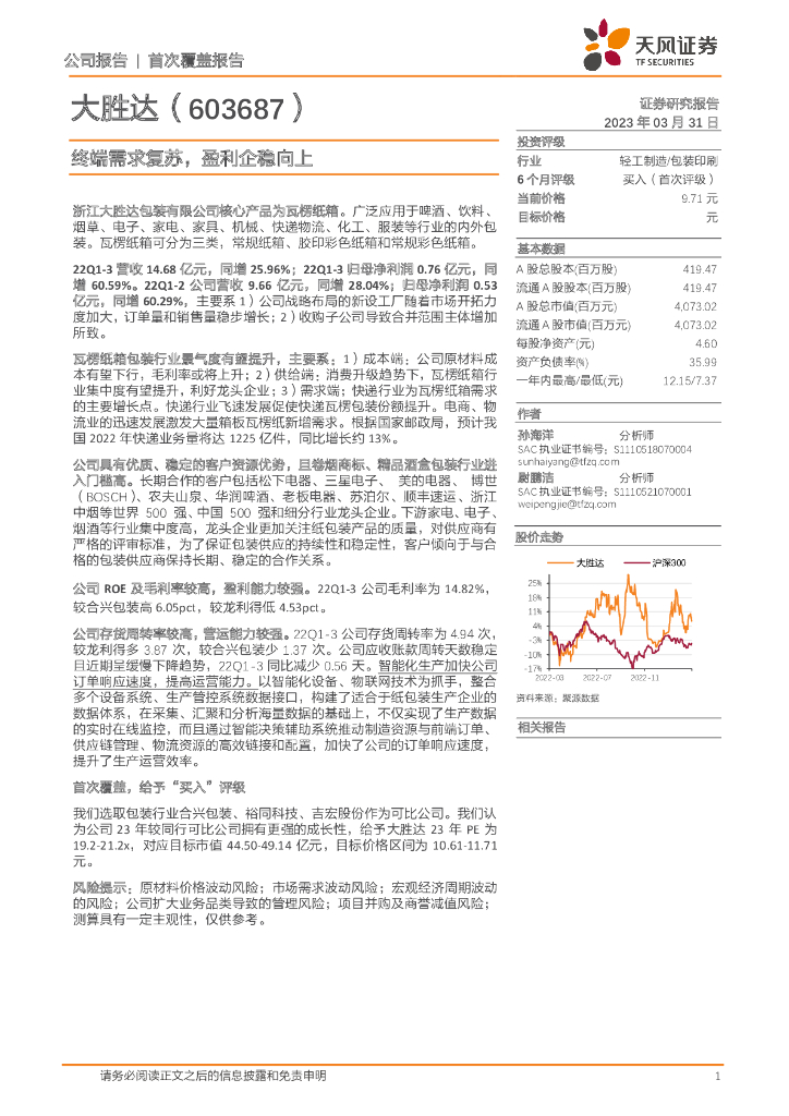 天风证券:大胜达(603687)-终端需求复苏,盈利企稳向上.pdf