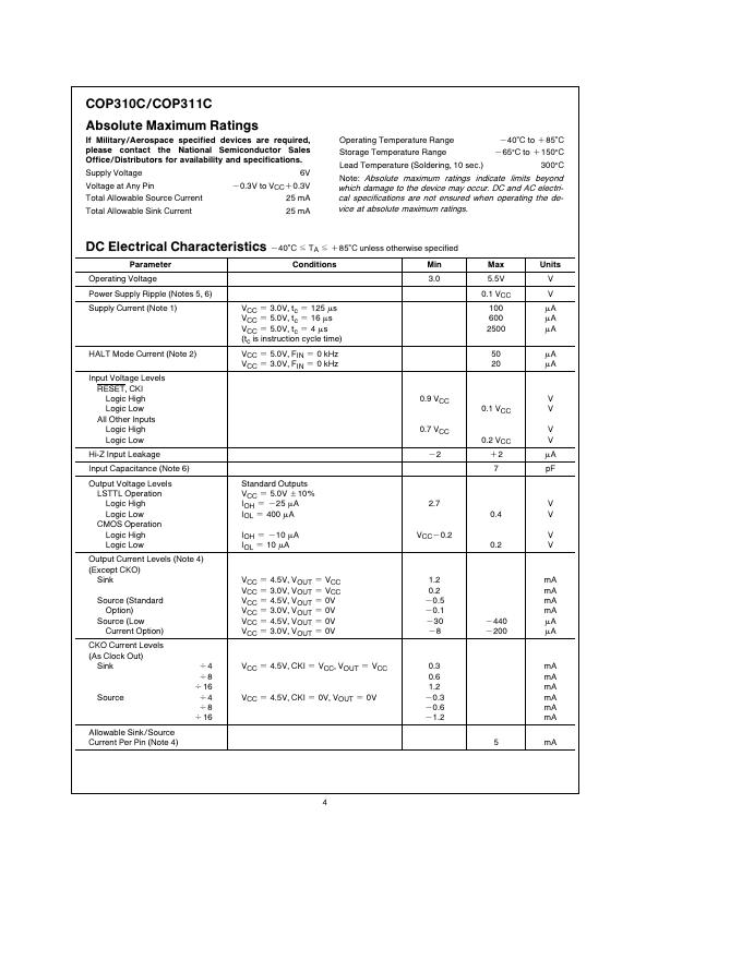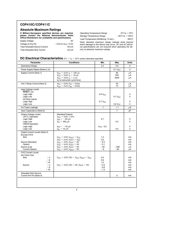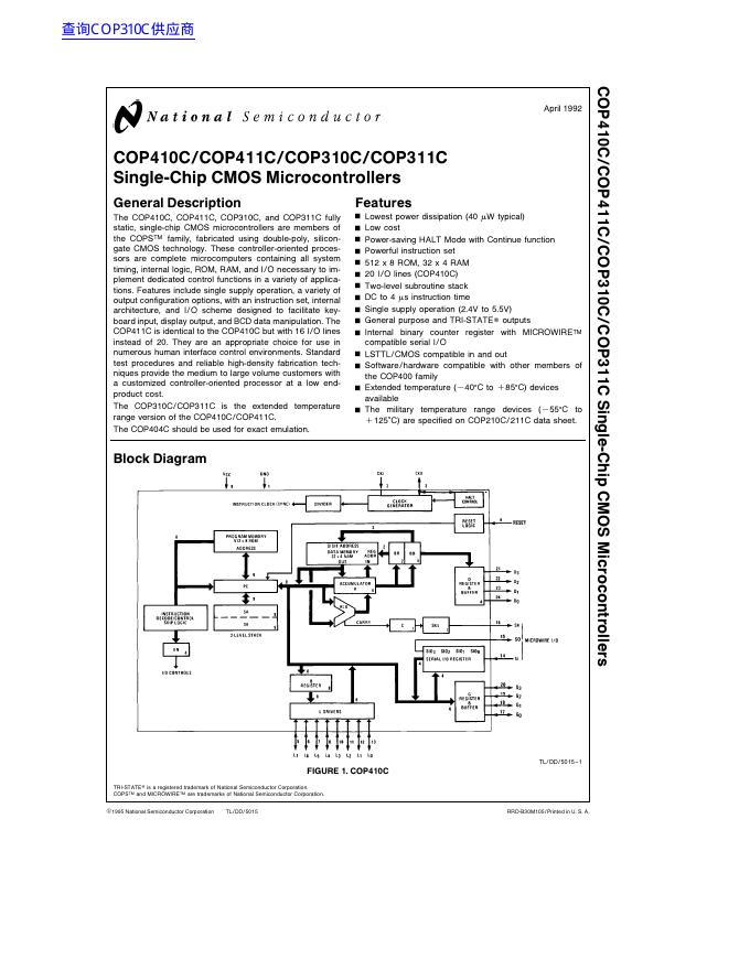 national semiconductor COP410C/COP411C/COP310C/COP311C Single-Chip CMOS Microcontrollers 数据手册.pdf