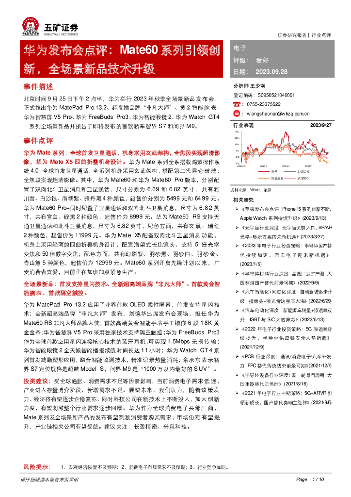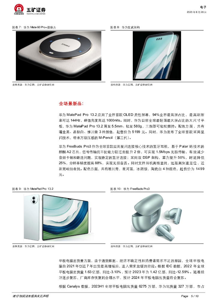 五矿证券:电子:华为发布会点评:Mate60系列引领创新,全场景新品技术升级.pdf