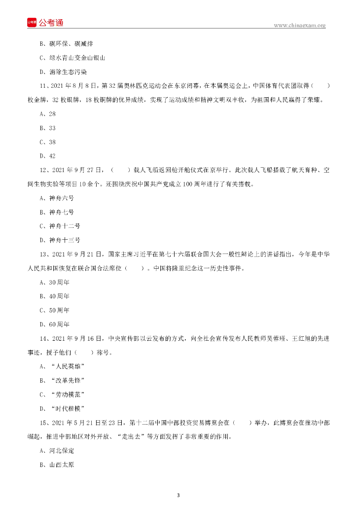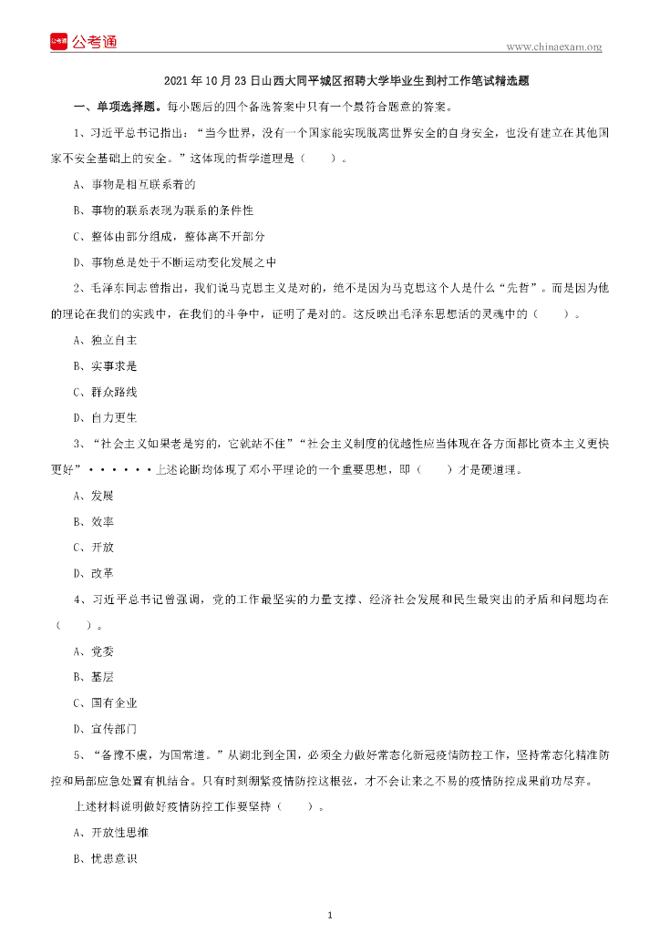 2021年10月23日山西大同平城区招聘大学毕业生到村工作笔试精选题.pdf