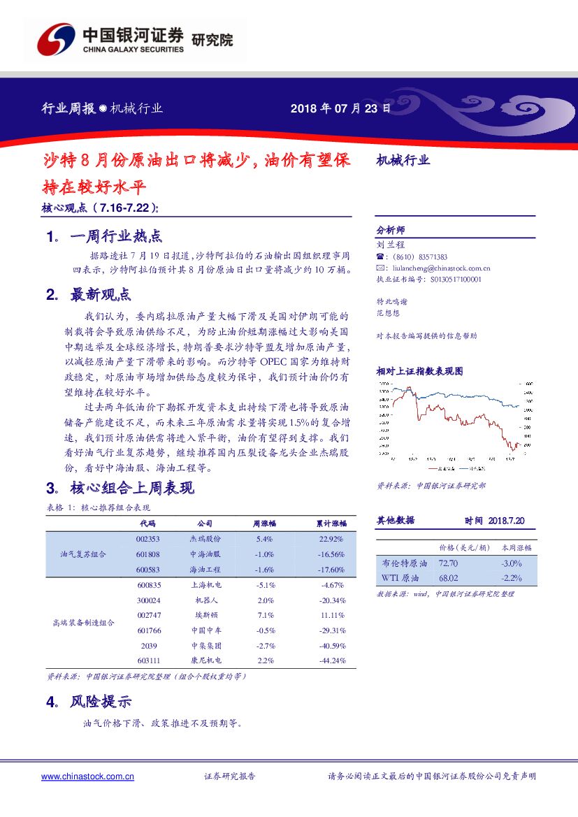 中国银河:机械行业周报:沙特8月份原油出口将减少,油价有望保持在较好水平.pdf