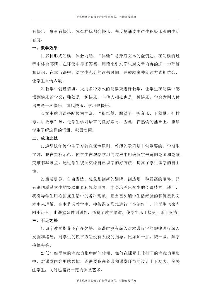 一年级语文下册7 怎么都快乐 教学反思.doc